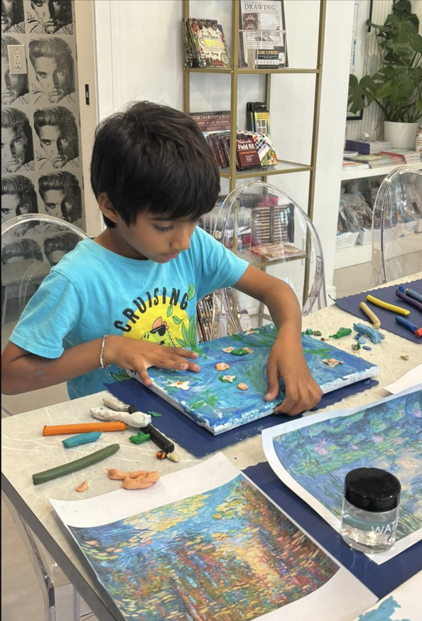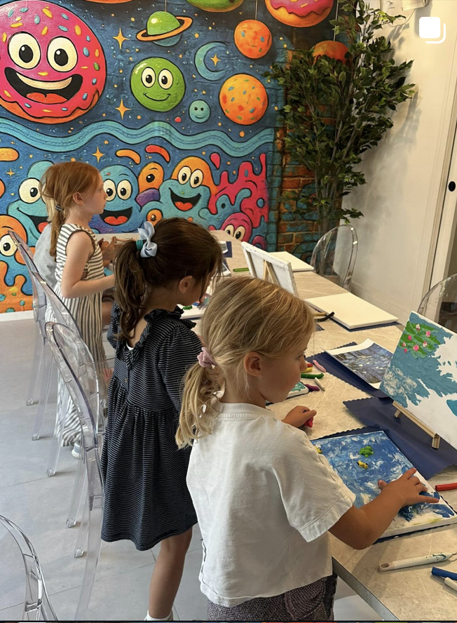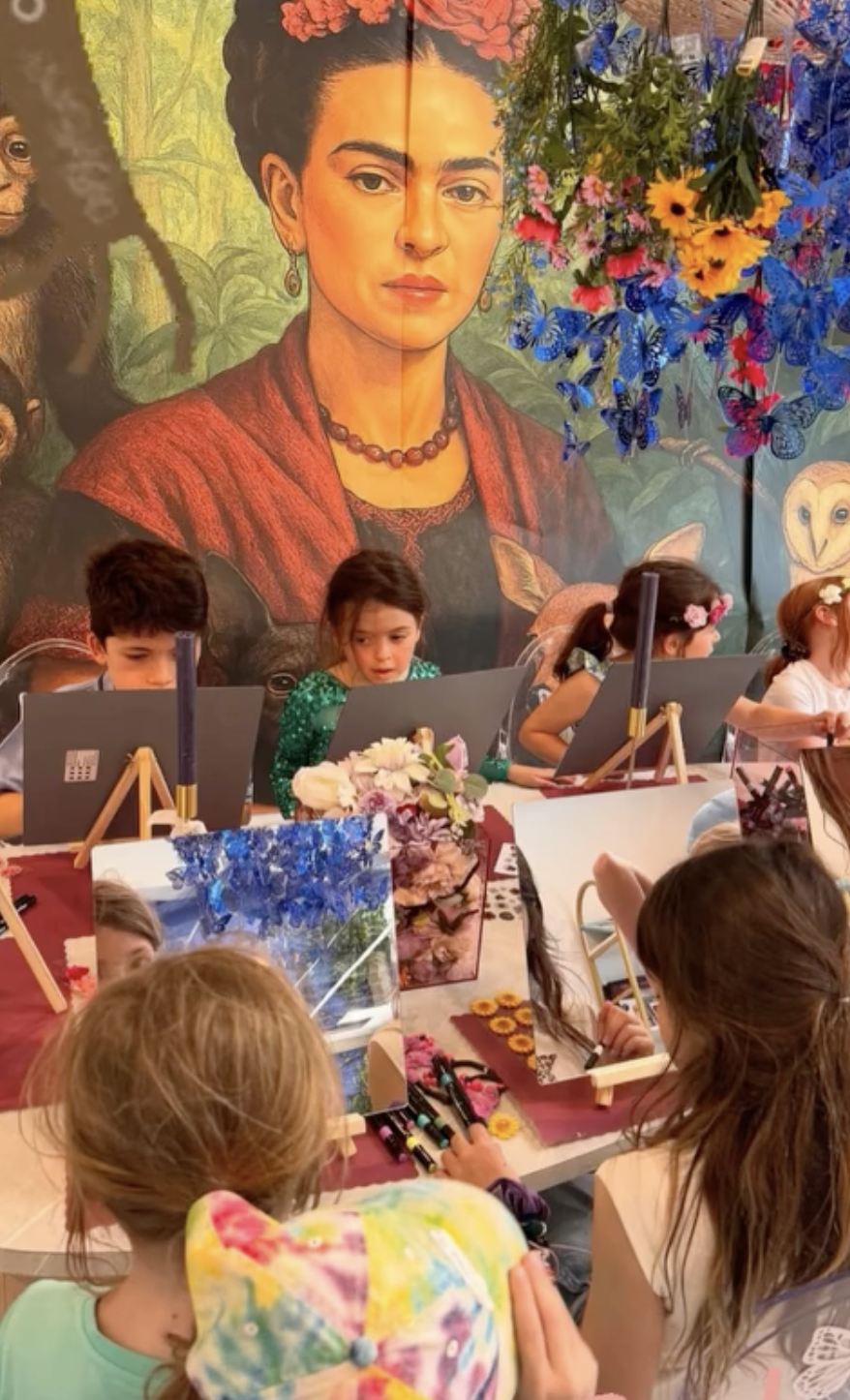 A relaxed, welcoming creative space where kids can drop in and unwind after a long week. Children can choose to work independently or alongside friends while our guided hosts gently support exploration with materials, prompts, and encouragement—without step-by-step instruction. They can also pick from our rotating menu of iconic artist-inspired activities—from Kenny Scharf–style skateboard decks and graffiti art to Frida Kahlo–inspired self-portraits and more. Parents are welcome to join, or drop off and give kids time to decompress, create freely, and enjoy the calming, confidence-building experience of open-ended art.