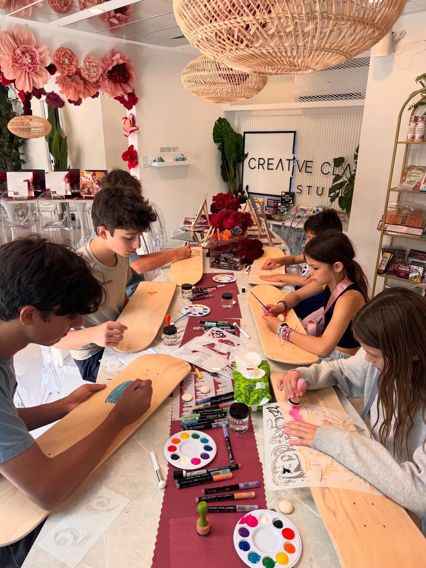 Let your child turn a blank skateboard deck into a bold masterpiece! Unleash their creativity with graffiti inspired art using vibrant paints, edgy markers, and wild patterns. From stylized letters to cosmic splashes of color, each board becomes a one-of-a-kind expression of their imagination. Hang it as art—or slap on some wheels and cruise the streets in style.